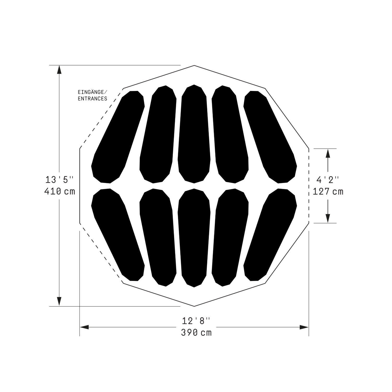 13.2 m² / 142.1 sq. ft. (Innenzelt: 13.2 m² / 142.1 sq. ft.)