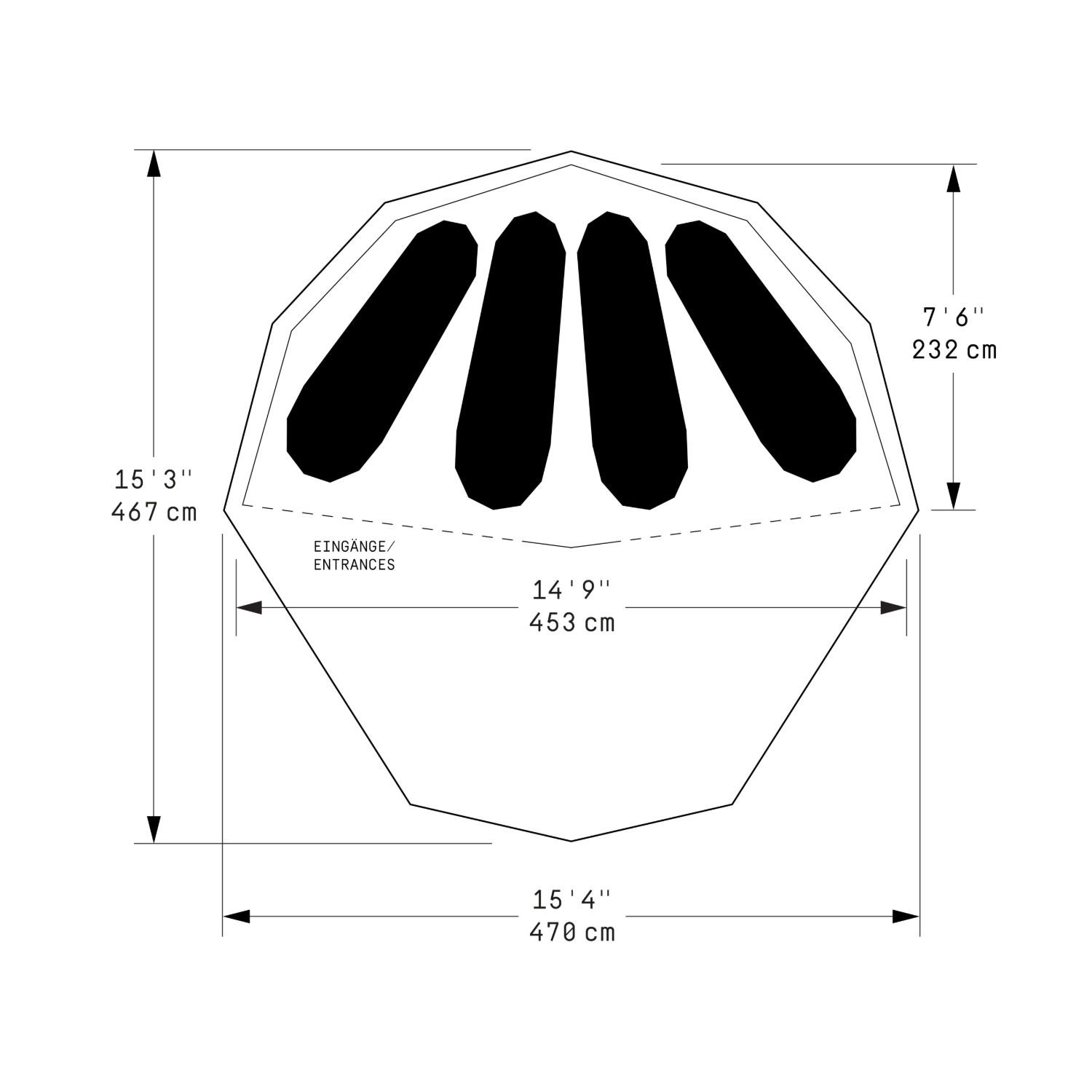 14.5 m² / 156.1 sq. ft. (Innenzelt: 7.6 m² / 81.8 sq. ft.)