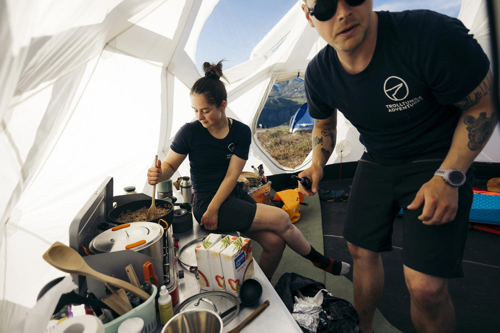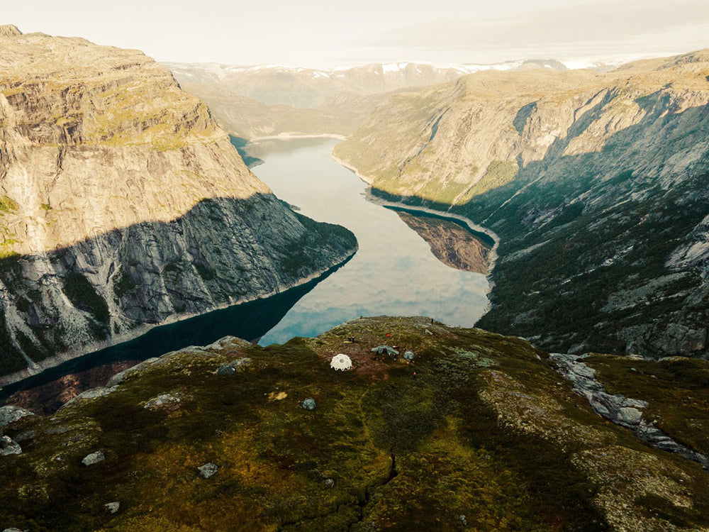 Diese 8–12-stündige Wanderung erstreckt sich über zwei Tage, sodass du die Natur in vollen Zügen genießen kannst. Während sich am Nachmittag die Menschenmassen von Trolltunga verabschieden, kommen wir an und erleben die goldene Stunde – perfekt für atemberaubende Fotos, ganz ohne Stress und Warteschlangen. Von dort aus ist es nur ein kurzer Weg zu unserem abgelegenen Camp auf 1200 Metern Höhe, wo ein entspannter Abend auf dich wartet.