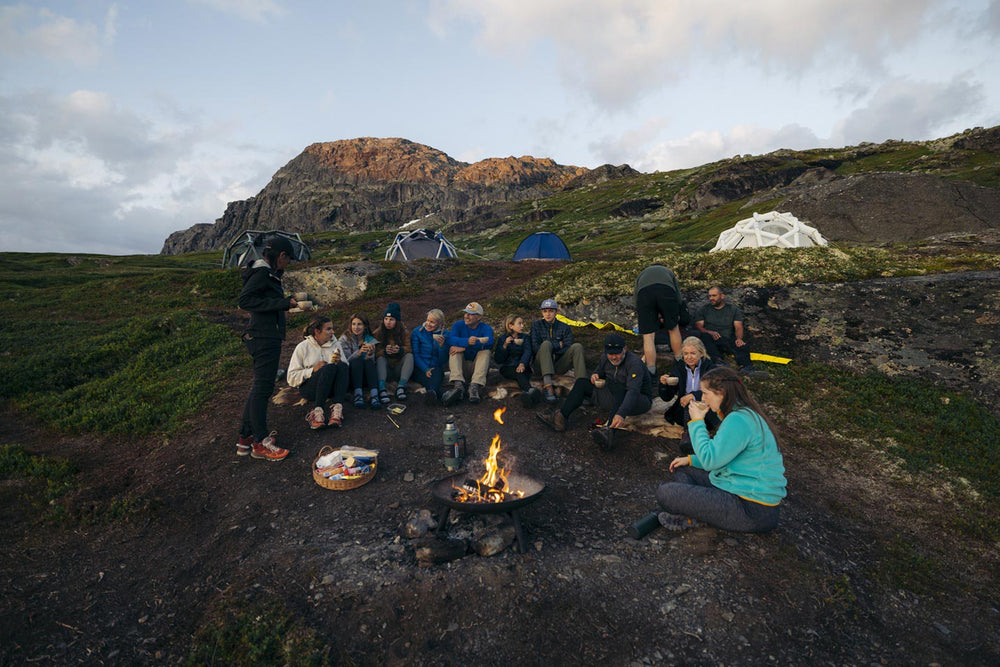 Am Lagerplatz erwartet dich ein gemütliches Abendessen mit hausgemachtem Rentier-Eintopf (oder einer vegetarischen Alternative), spannende Geschichten am Lagerfeuer und vielleicht sogar ein erfrischendes Bad in einem kristallklaren Bergsee. Oder du besuchst unseren geheimen Sonnenuntergangs-Felsen, der eine spektakuläre Aussicht auf Täler, Gletscher und zerklüftete Gipfel bietet.